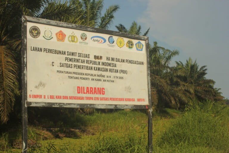 Warga Desa Paring Raya, Kabupaten Seruyan, Kalimantan Tengah (Kalteng), resah karena Satuan Tugas Penertiban Kawasan Hutan (Satgas PKH) menyita beberapa hektar lahan perusahaan sawit di wilayah mereka. Pasalnya, perusahaan-perusahaan itu sampai sekarang belum memberikan hak plasma pada masyarakat. Yayasan Masyarakat Kehutanan Lestari (YMKL) mencatat, ada dua korporasi yang beroperasi di wilayah ini. PT Wana Sawit Subur Lestari (WSSL) II, mengelola perkebunan sawit seluas 1.242,48 hektar dan PT Sumur Pandanwangi (SPW) menggarap 1.622,63 hektar. Keduanya memakan 41% wilayah kampung dan mengepung komunitas adat Dayak Pembuang di sana. Informasi yang Mongabay dapat, Satgas PKH mengklaim 700 hektar kebun sawit SPW dan mengambil sekitar 617 hektar lahan WSSL II. “Wilayah yang disita Satgas PKH merupakan lahan yang telah bertahun-tahun kami perjuangkan dan pernah dijanjikan perusahaan untuk dijadikan plasma,” ucap Saharin, tetua kampung. Setelah itu, lahan Satgas PKH serahkan pada PT Agrinas Palma Nusantara, perusahaan negara yang mengelola aset sitaan Satgas PKH. Pada praktiknya, Agrinas kemudian percayakan pengelolaan pada vendor, PT Berlian Bintara Beton. Plang penanda kawasan PT WSSL II yang disita Satgas PKH. Foto: Riyad Dafhi Rizki/Mongabay Indonesia. Tidak terima dengan kebijakan itu, warga kemudian protes dan dipertemukan dengan perwakilan Satgas PKH, Agrinas, dan pemerintah daerah, 20 Oktober. Dalam forum itu, mereka minta lahan sitaan perusahaan dapat masyarakat kelola langsung melalui koperasi desa. Namun, dialog tak menghasilkan keputusan yang berpihak kepada warga. Agrinas bersikukuh menyerahkan pengelolaan lahan kepada vendor, dengan alasan arahan Presiden Prabowo Subianto. Pengambilalihan itu juga mengakibatkan warga yang bekerja di WSSL II harus dirumahkan. Namun, pertemuan itu menawarkan warga yang…This article was originally published on Mongabay